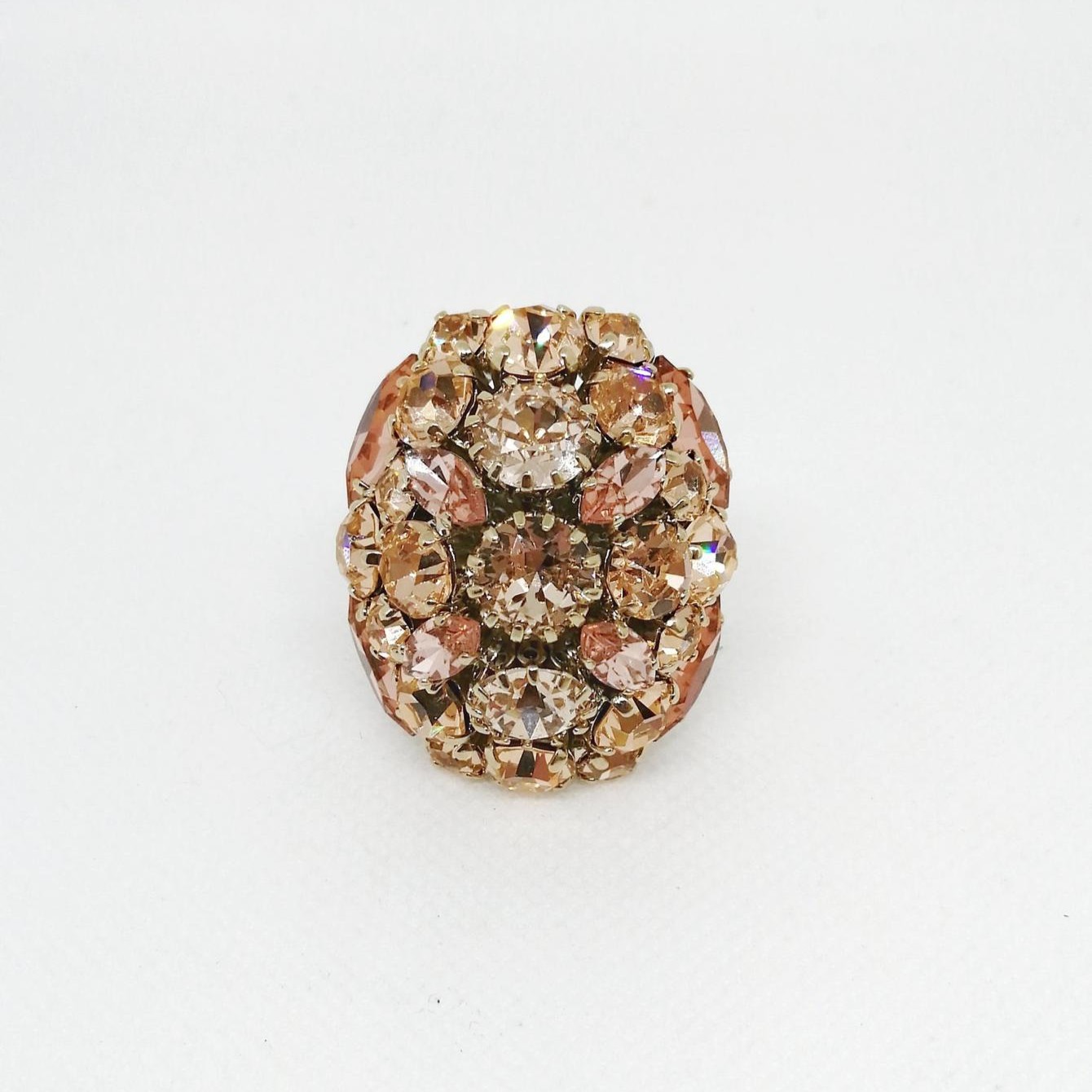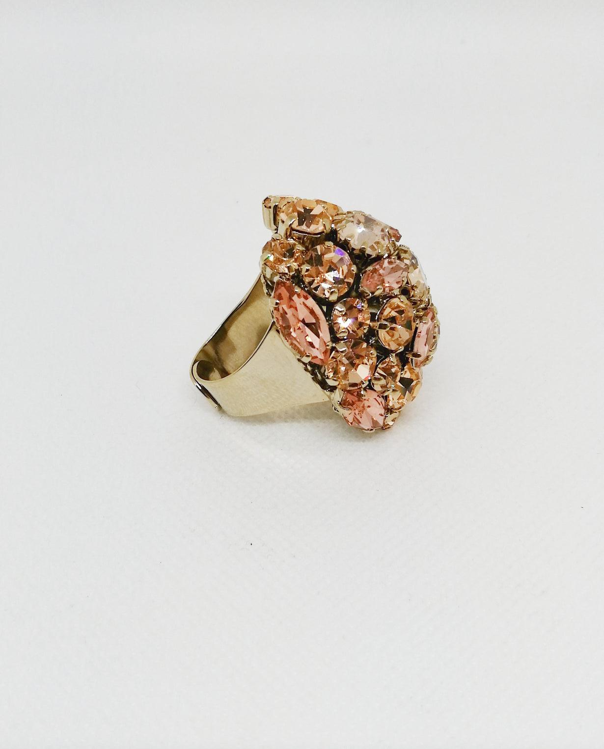 Anello placcato oro 18 kt e cristalli color oro Dimensioni 3 cm x 3,5 cm Made in Italy 100% hand made