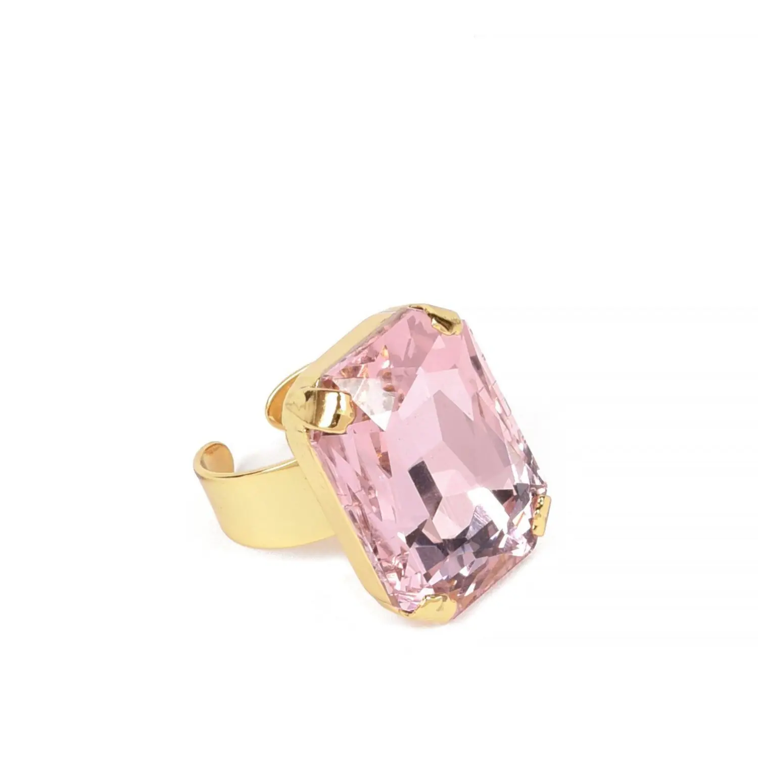 Anello con cristallo colore rosa Dimensioni 2,5 cm x 1,80 cm Placcato oro 18 kt Made in Italy 100% hand made