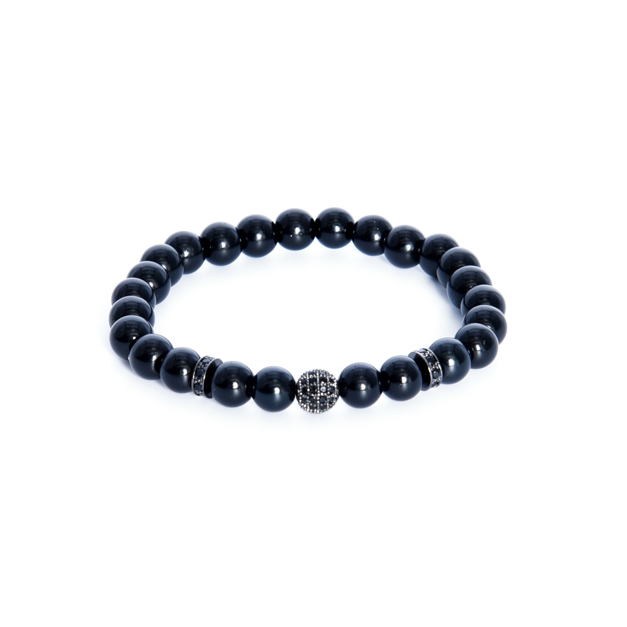 BALANCE bracciale artigianale in argento 925 e pietre tonde in onice nero con zirconi.