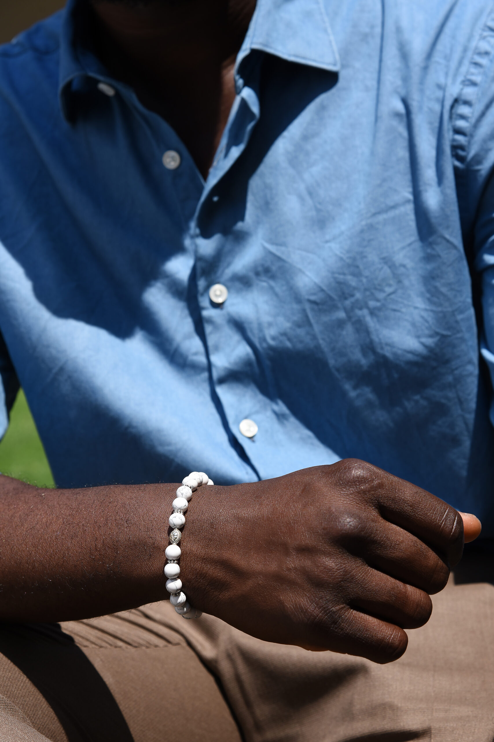 HAUMEA bracciale artigianale in argento 925, e pietra tonda, aulite bianco.