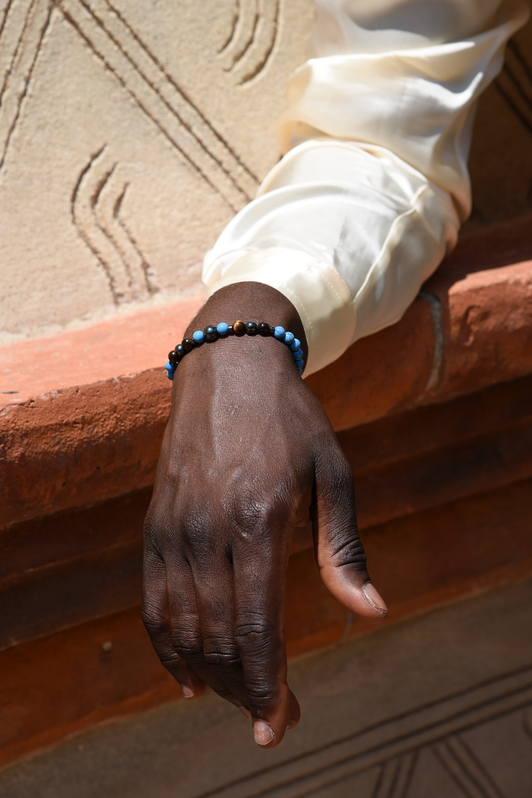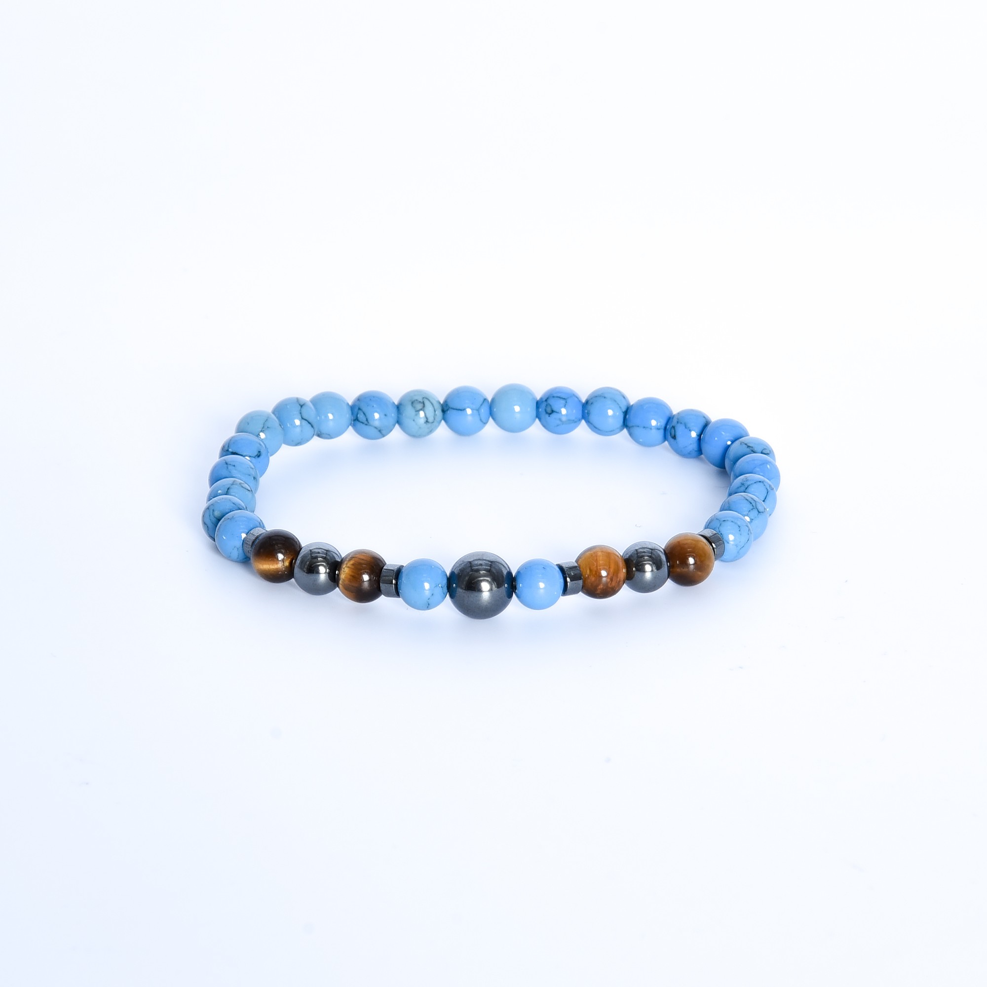 Questo gioiello artigianale unisce tre pietre potenti in un design armonioso: l’Occhio di Tigre giallo , celebre pietra portafortuna che infonde coraggio, l’ Ematite per la stabilità e l’Aulite blu per la serenità.