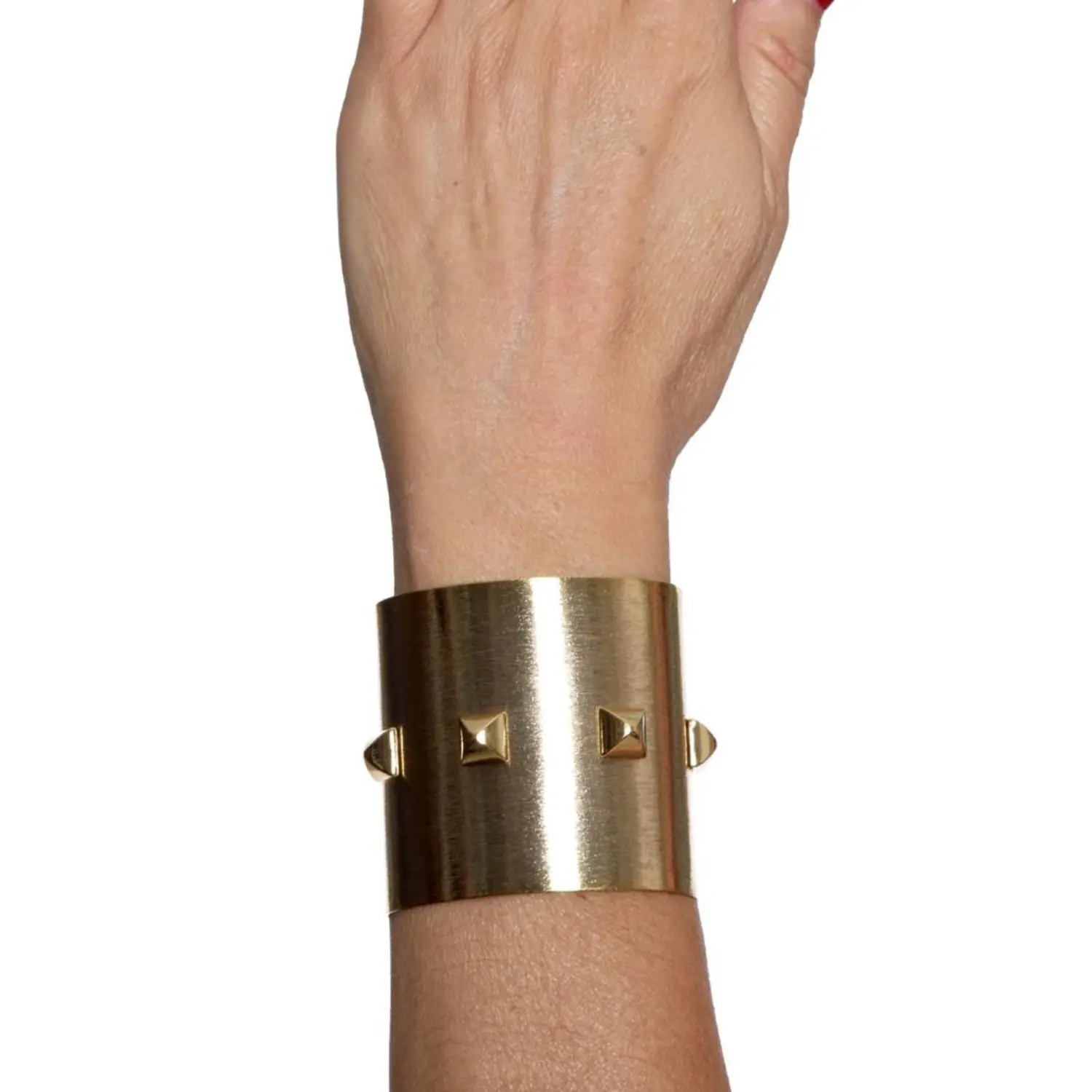 Questo bracciale rigido con borchie è perfetto per donne che amano esprimere la loro forza attraverso la moda.