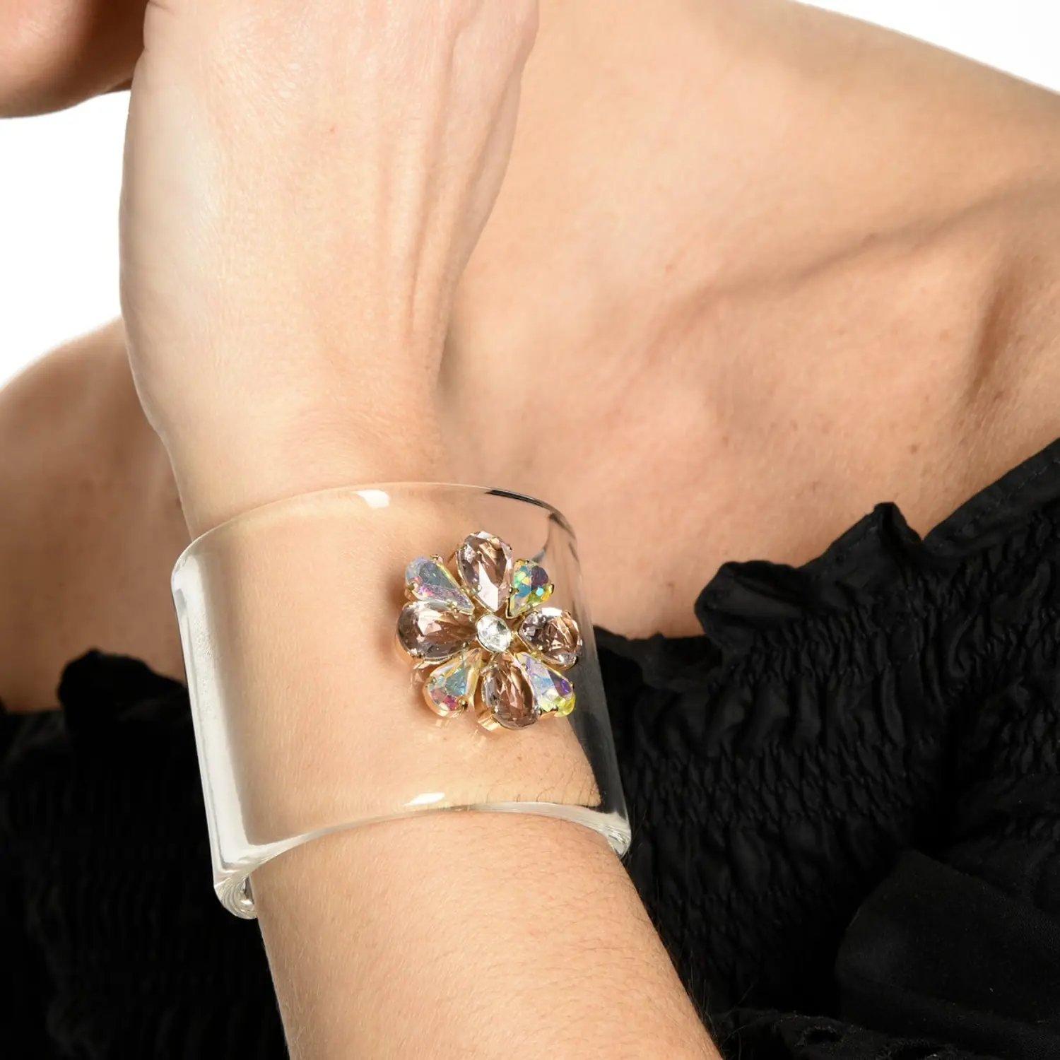 SOLE, il nome ispirato al sole, come questo bracciale in resina trasparente con i cristalli incastonati a mano.