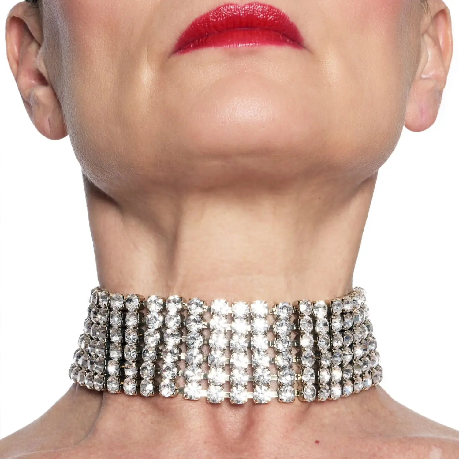 Choker fili strass color argento Dimensioni: 35,5 cm x 3,5 cm Placcato argento 925 Made in Italy 100% hand made
