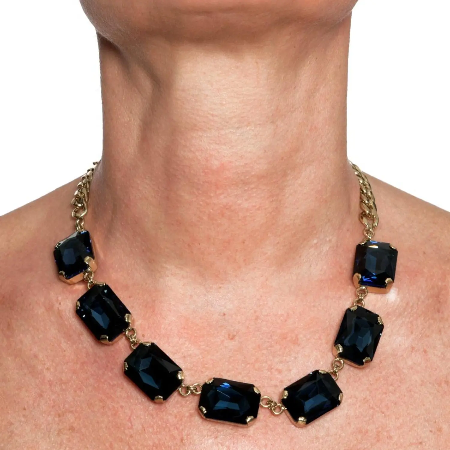 Collana con cristalli color blue, si può usare come choker, lavorata e incastonata a mano con preziosi cristalli che danno un tocco di classe al gioiello. Placcata oro 18 kt.