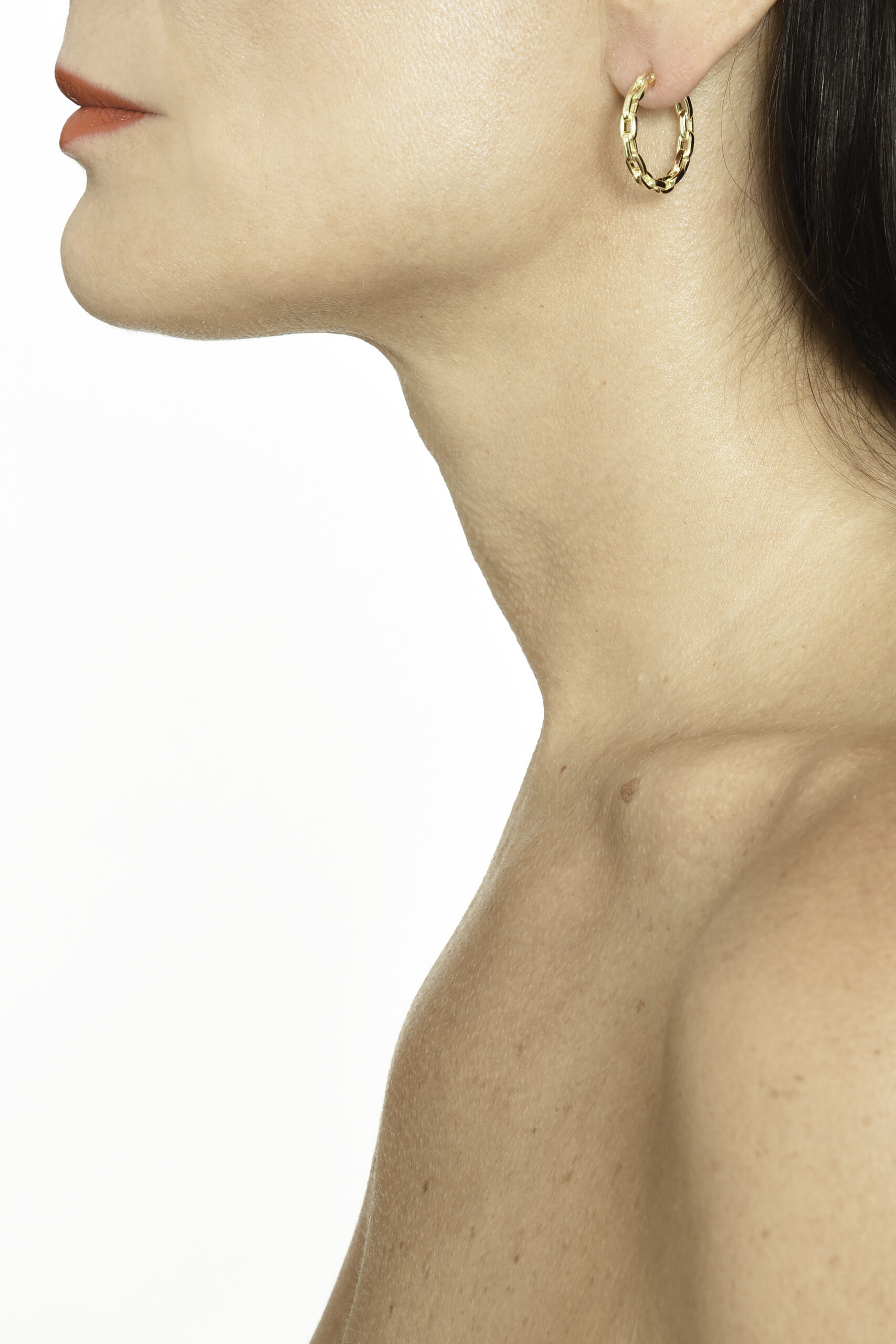 Placcati in pregiato Oro 18 Kt , questi orecchini a perno presentano un raffinato design a maglia incatenata . Gli anelli intrecciati simboleggiano la forza dell’unione e la bellezza della coesione, creando un gioiello dal carattere contemporaneo ma intriso di un significato millenario. Un accessorio essenziale per chi cerca uno stile che comunichi pace, stabilità e una connessione profonda con il proprio centro.