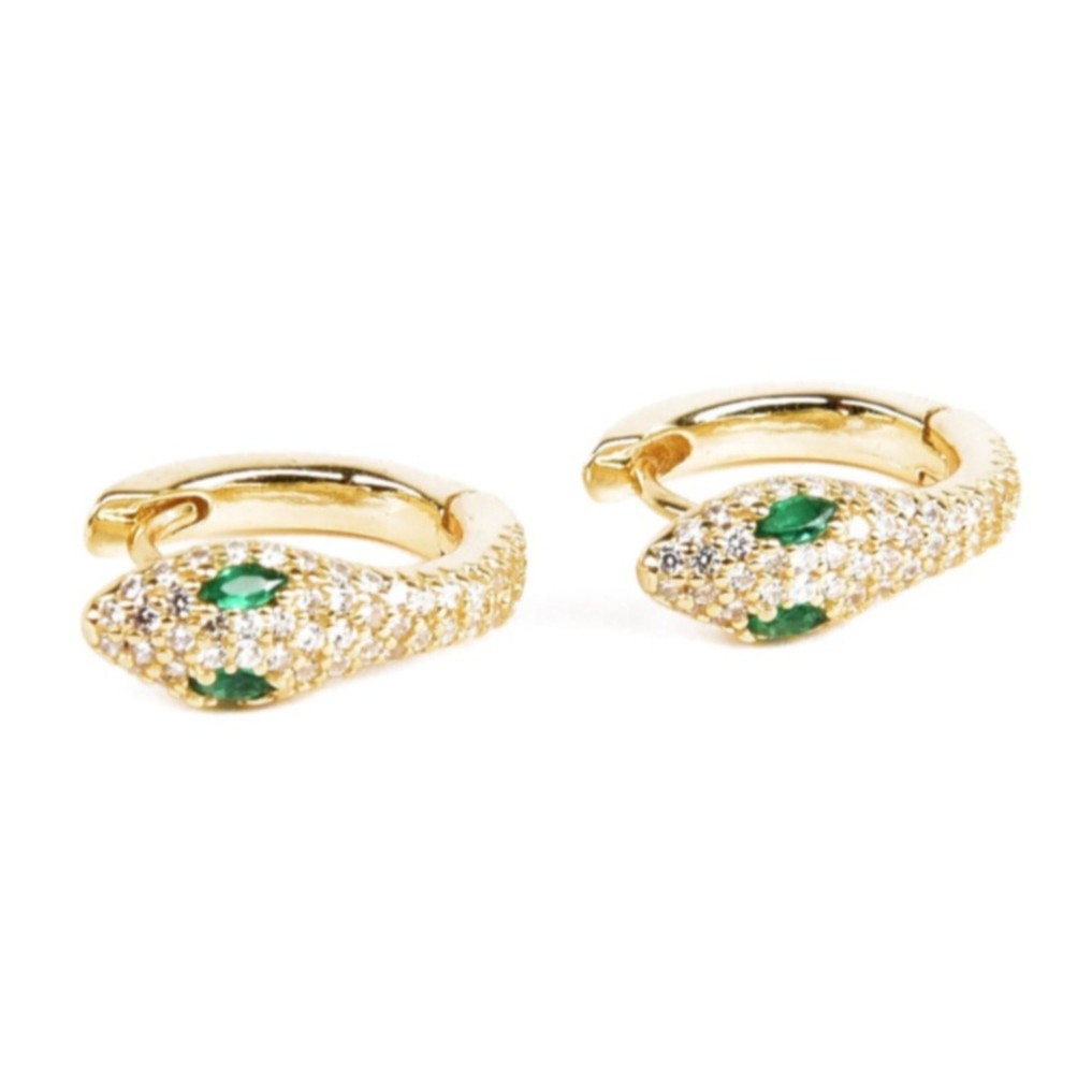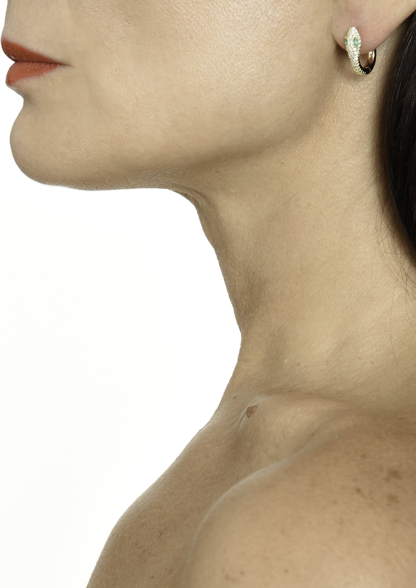 Orecchini perno chiuso di argento 925 con zirconi micropavè cerchietto a serpente, dorato bianco.
