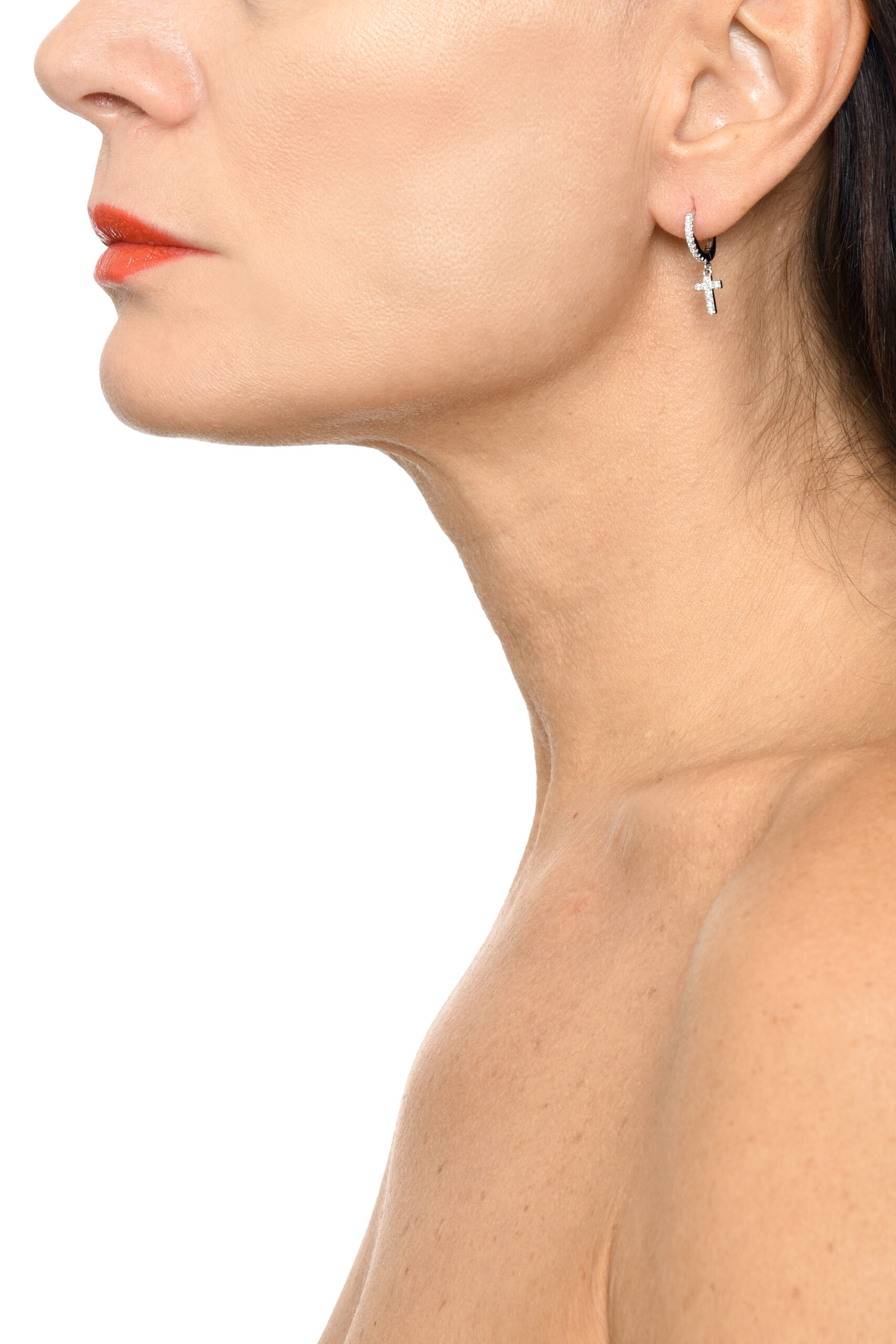 Perno di argento con zirconi Fantasia croce Dimensioni: 28 mm x 0,7 mm Colore: argento e zirconi Made in Italy 100% hand made