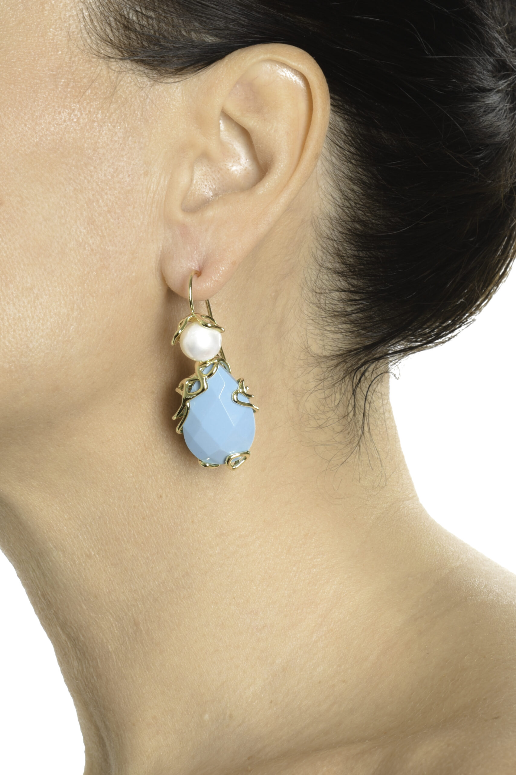 100% perla - bronzo placcato oro - pasta turchese