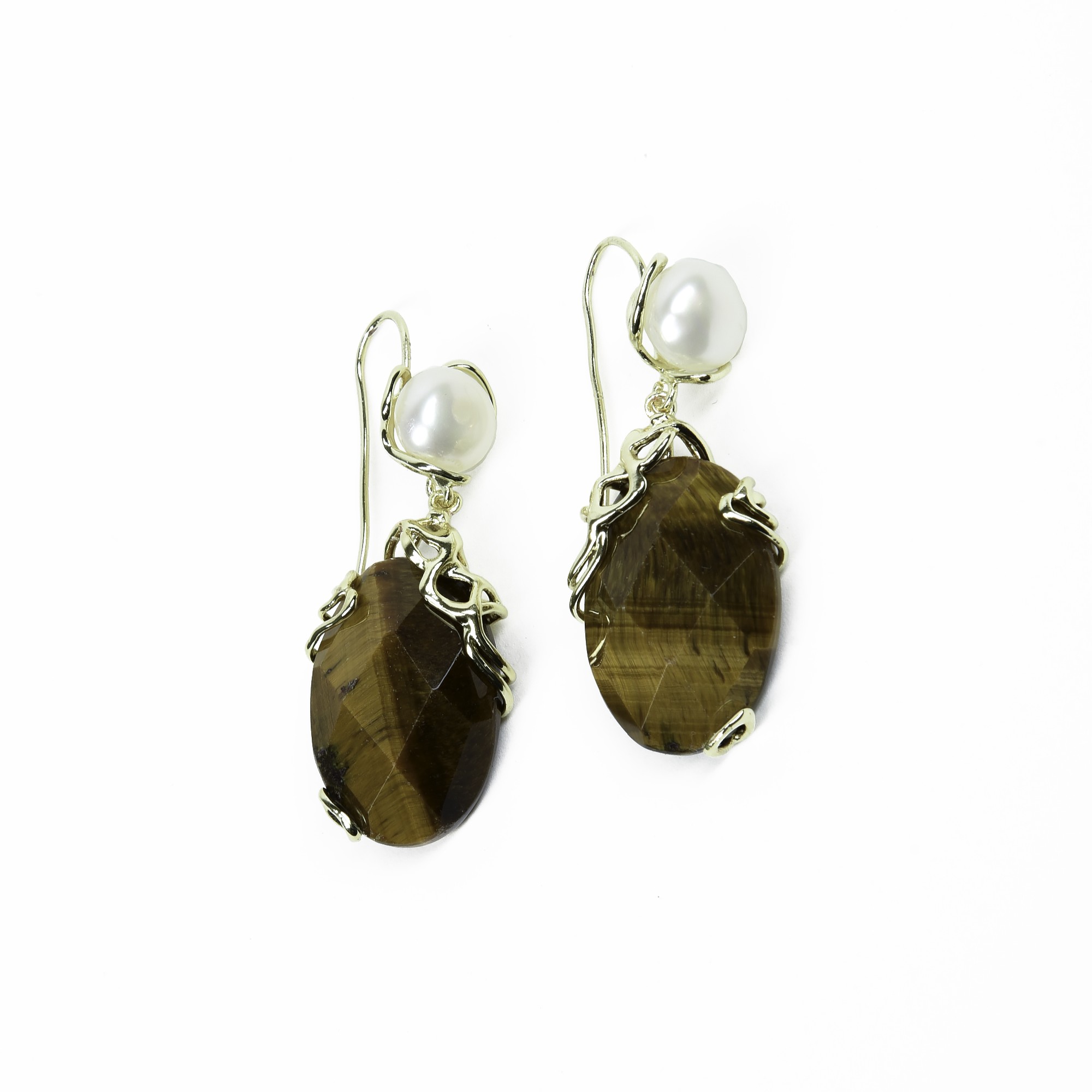 Perle di Maiorca e pietra occhio di tigre Dimensioni: 22 mm x 48 mm Made in Italy 100% hand made