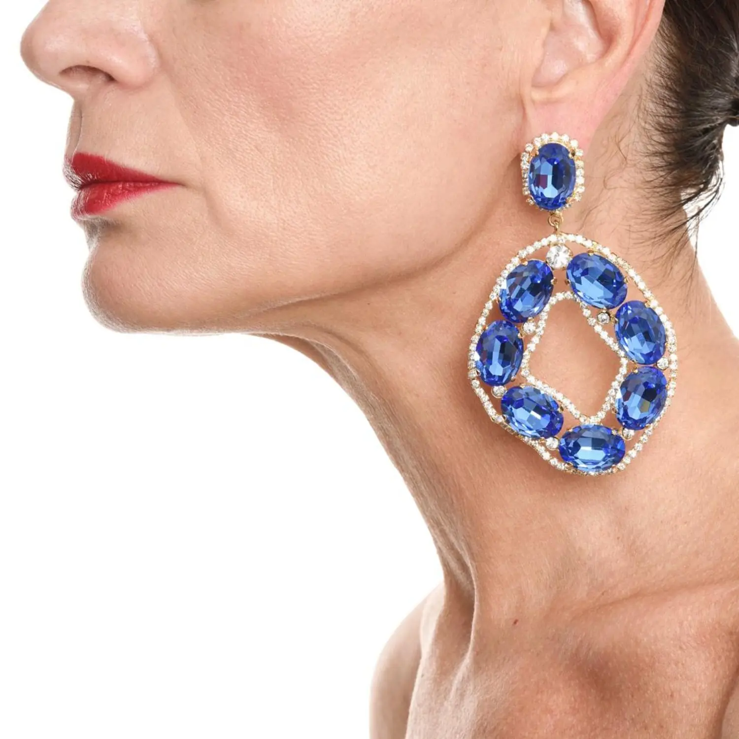 Orecchini con cristalli incastonati a mano. Color blue. Placcato argento 925.